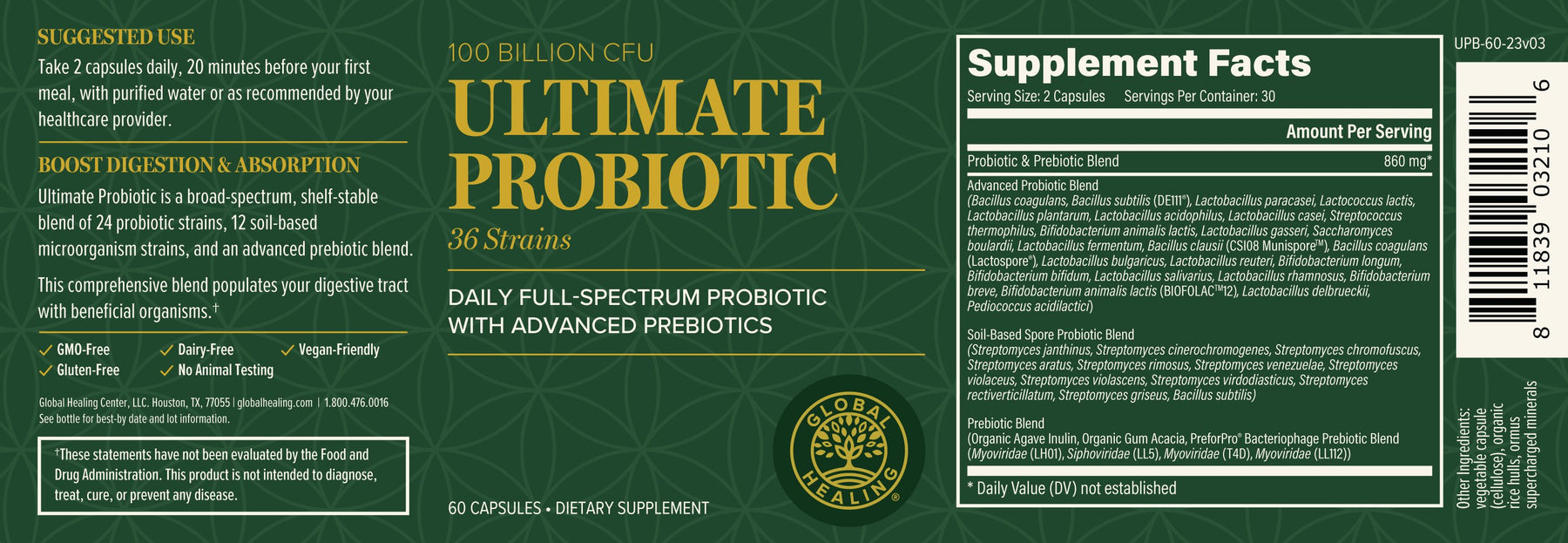 Ultimate Probiotic, with 100 billion CFUs per serving, is the daily probiotic that will boost your digestive system for greater gut health and immunity. This premium supplement contains an advanced prebiotic combination, 12 soil-based microbe strains, and 24 probiotic strains.