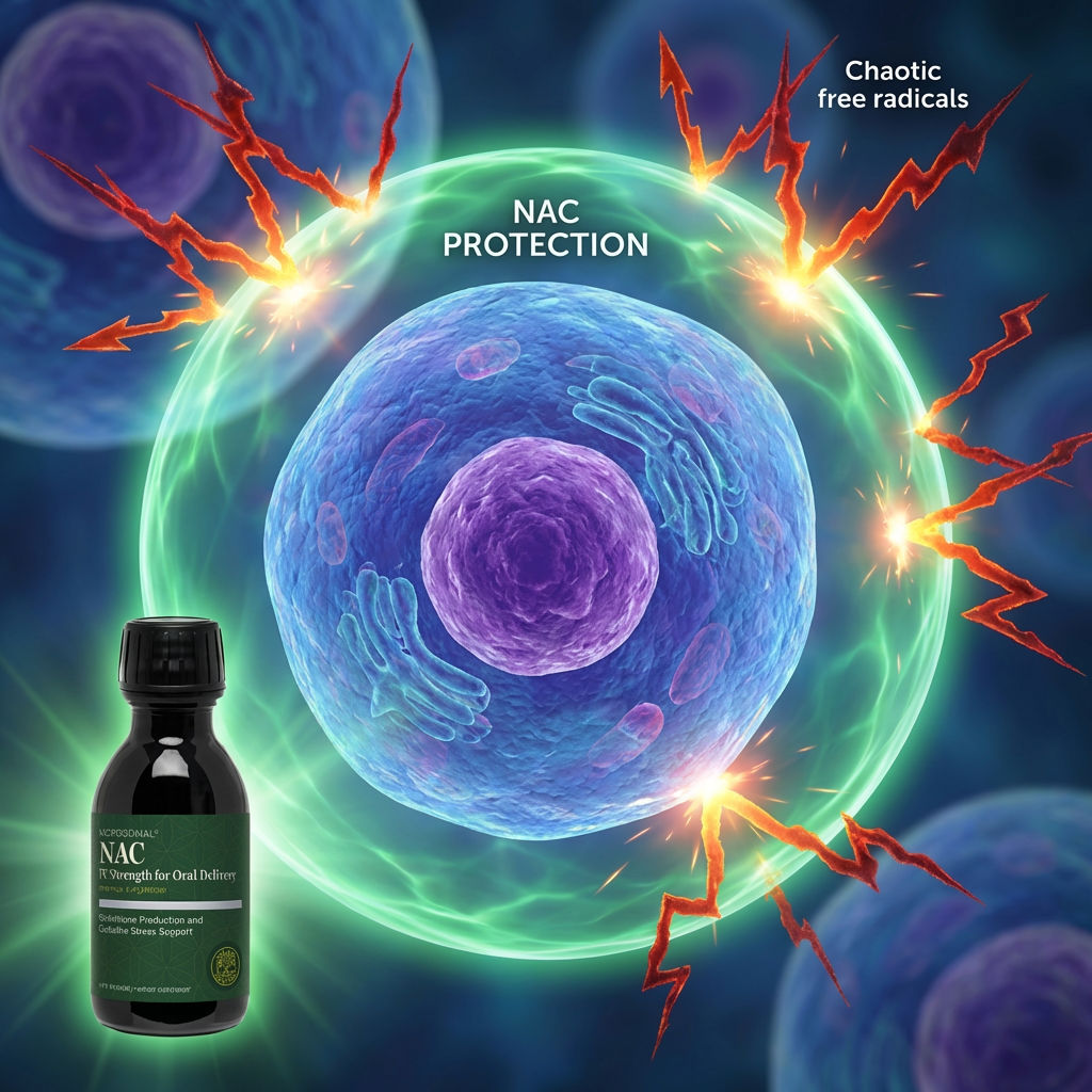 In simple terms, NAC (N-Acetyl Cysteine) is a supplement that helps your body create its own "master antioxidant" called glutathione.